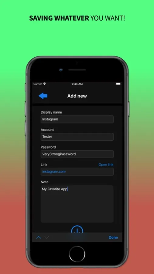 You can save whatever you want from password, login account, credit card, driver license, passport... to a recipe, a poem, story or even a book.