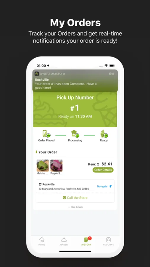 Track your Orders and get real-time notifications your order is ready!