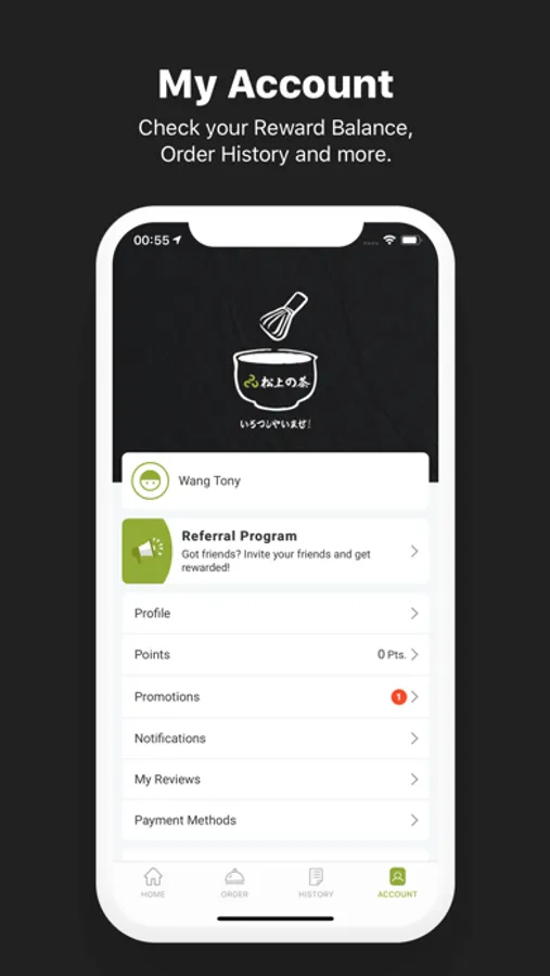 Check your Reward Balance, Order History and more.
