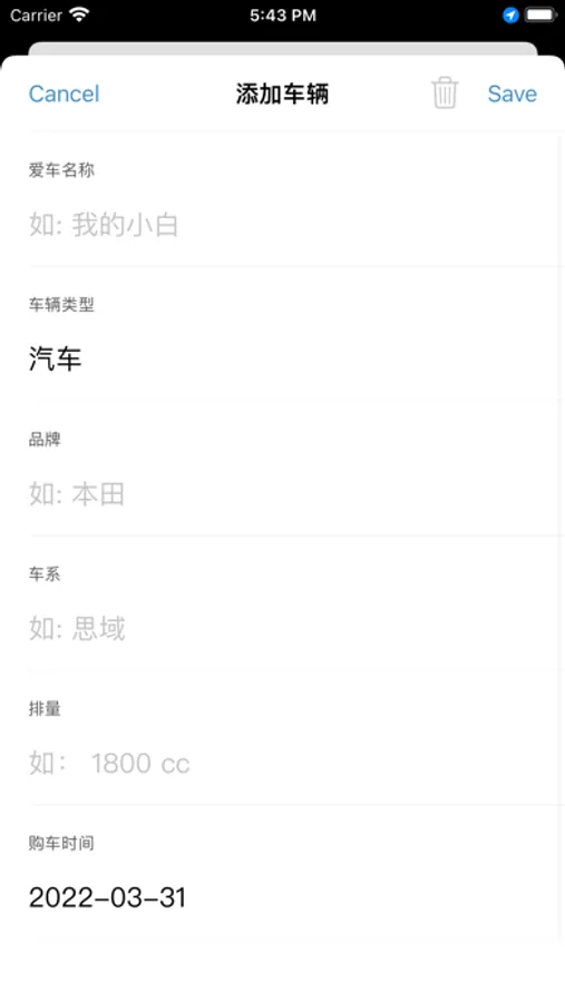 1. 管理车辆,支持汽车、货车、摩托车,且无数量限制。