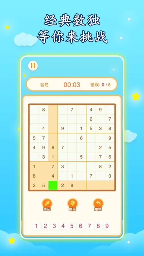 你专心做完一道数独题。每天一道题,助你在数独的成长之路上稳步前进。