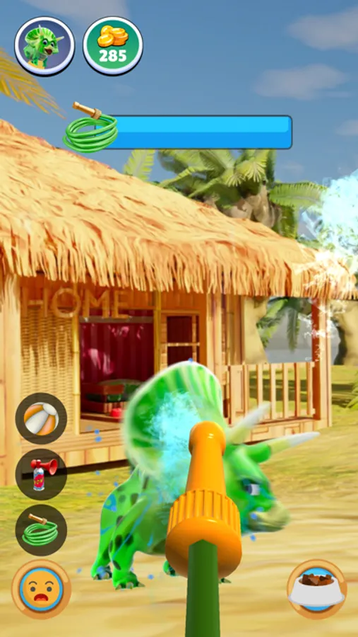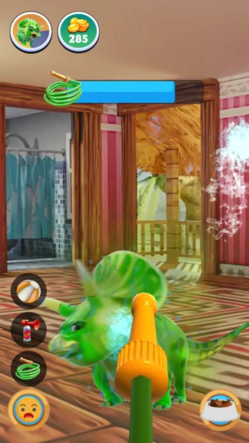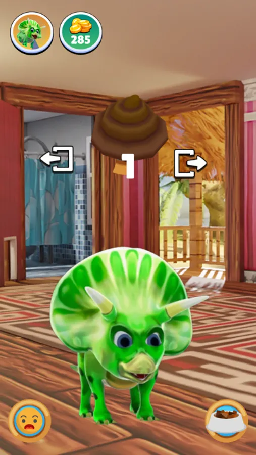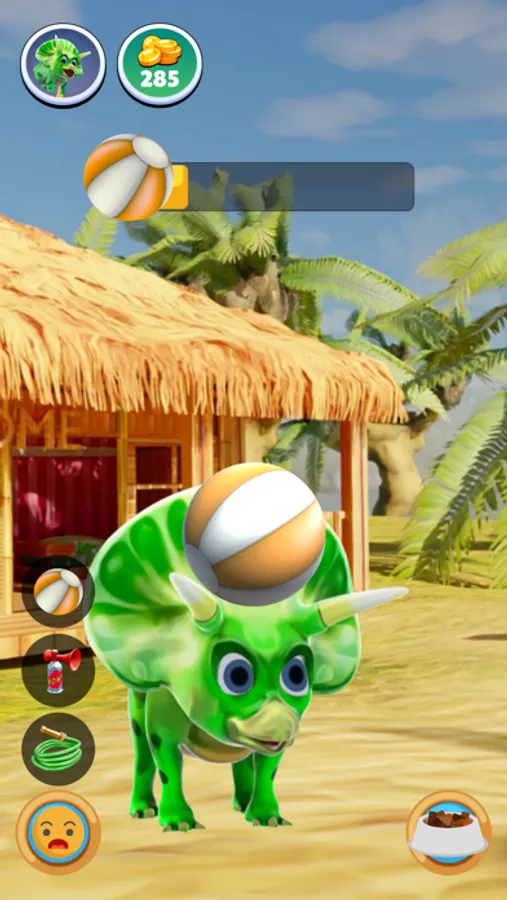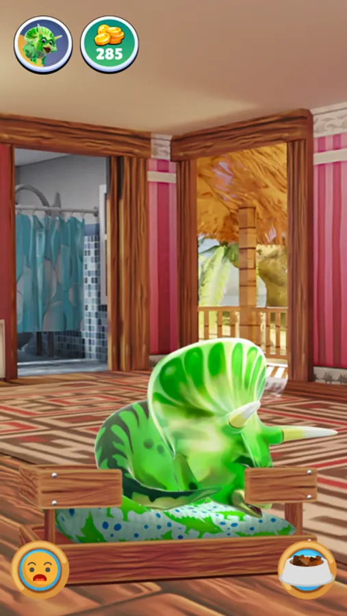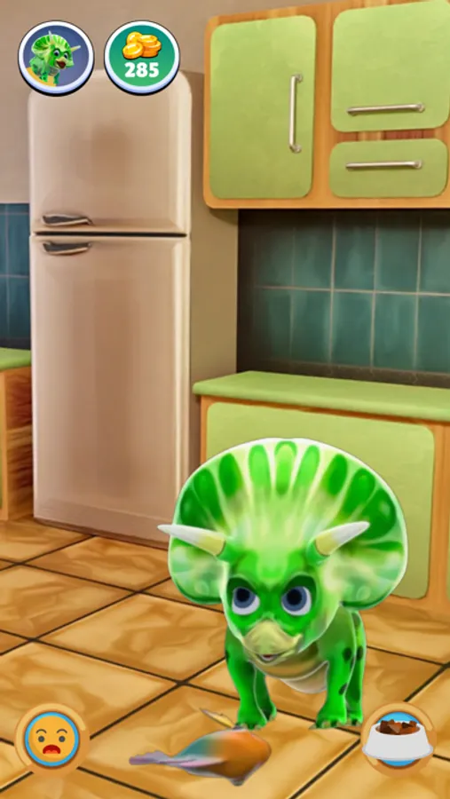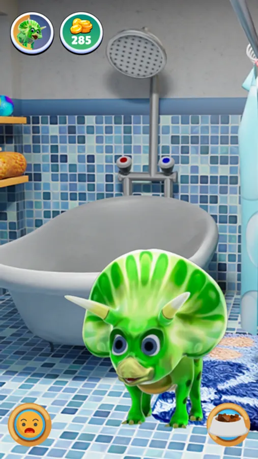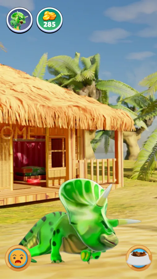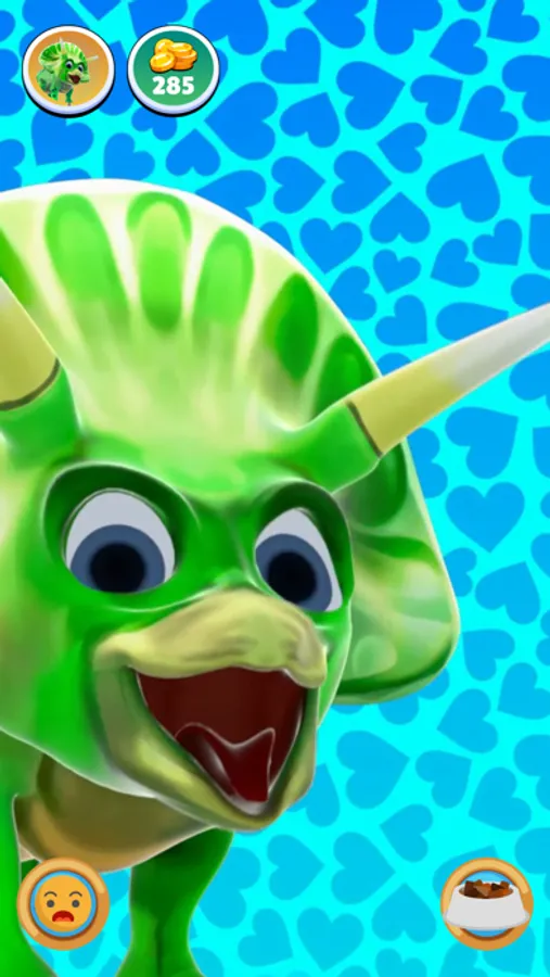 Play with triceratops Mi-mi. Spend time with your pet. Play with him, feed him and put him to bed