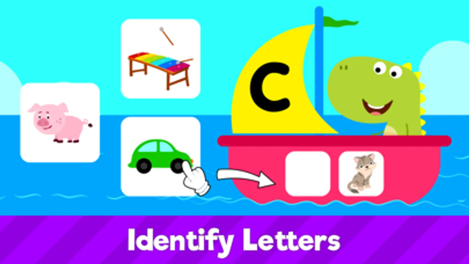 Tap on the uppercase and lowercase letters to form a bridge & go on a fun trip with dogs, cats, elephants & more!