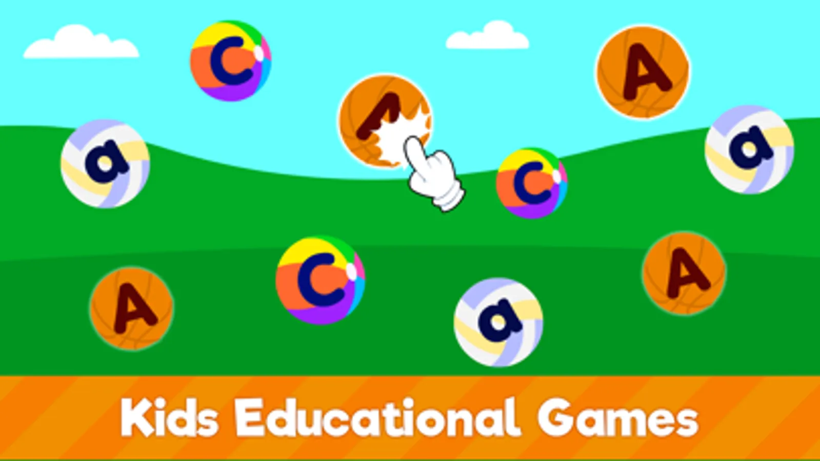 Tap to learn! Kids need to tap on the uppercase and lowercase letters. Letters will be displayed on different objects; jellies, candies & more!
