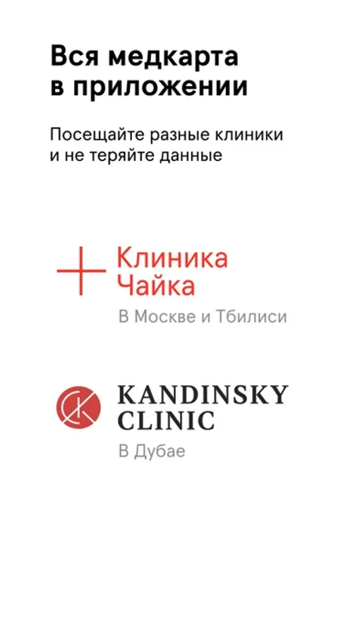 Health — приложение, в котором вы можете выбрать врача и записаться на прием в клиники «Чайка» в Москве и Тбилиси, а также в Kandinsky clinic в Дубае.