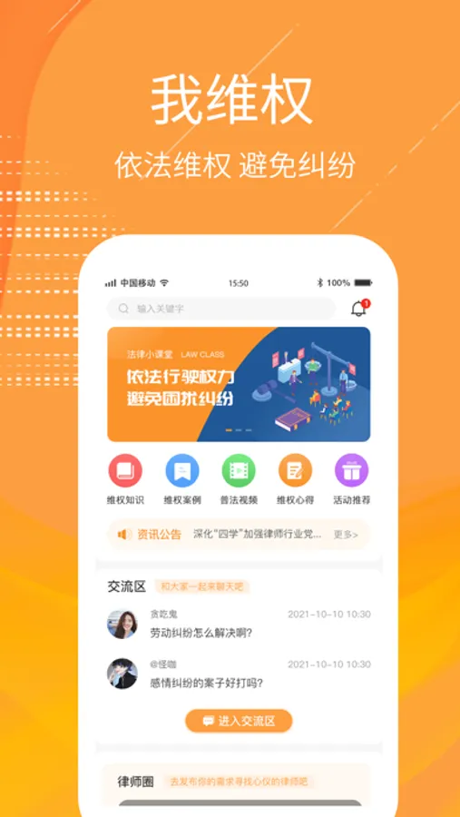 维权人可以交流沟通、还能够就维权事项咨询律师或者平台。同时可以将维权需求在平台发布,而平台律师通过竞价和法律方案提供维权人选择。平台还提供维权知识、案例、普法视频供参考。