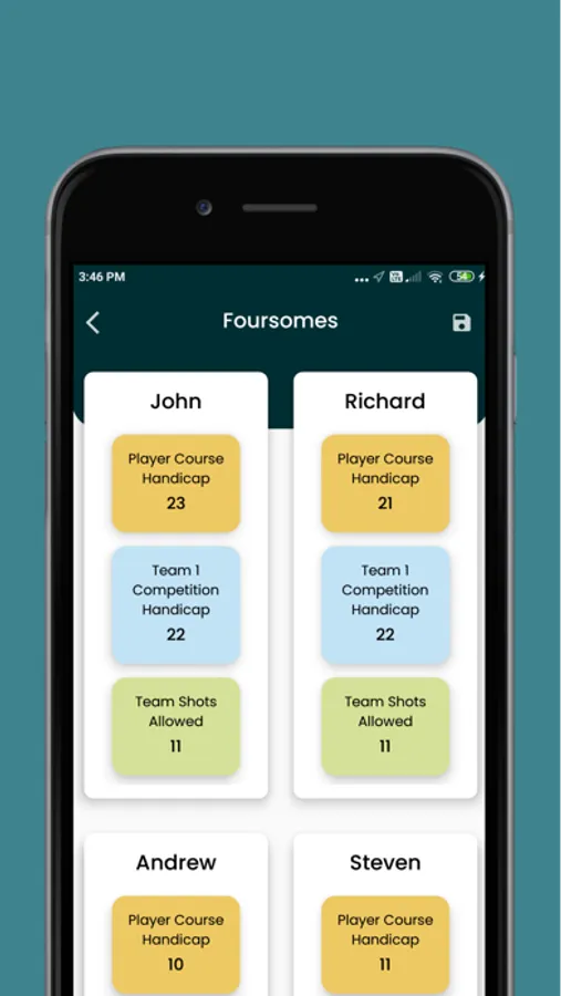 • Golf match format (4-ball stableford, foursomes, scramble, etc)