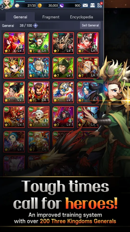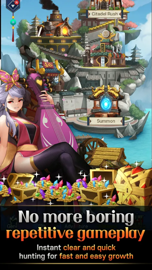 Build your own invincible army through General Summon, General Combination, General Promotion, Equipment Upgrade, and Research system!