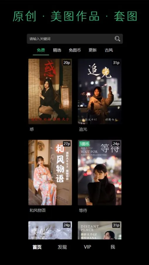 原创、超高清、无水印、无损原图下载。全部都是套图。超清4K · 沉浸式欣赏海量美图作品。作品类型:唯美、古风、画意、禅意、小清新、美女、帅哥、写真集等。