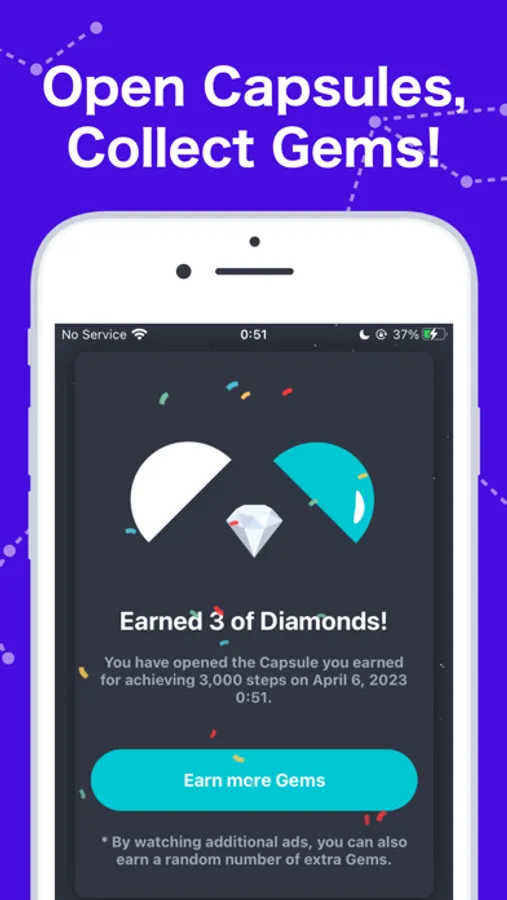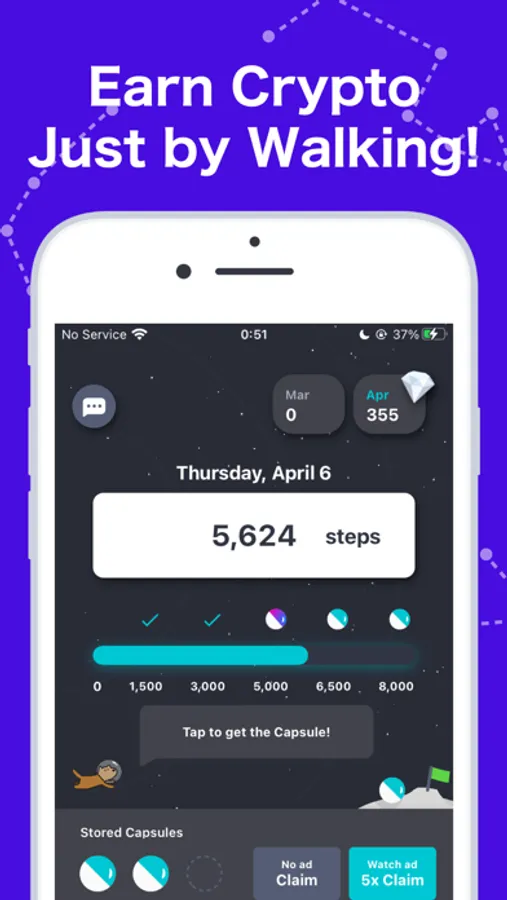 This app allows you to earn cryptocurrency through daily walking. Based on your number of steps, you'll earn 'Capsules' within the app. By opening these Capsules, you'll obtain 'Gems'. Then, by submitting this 'Gem' information to the center in the following month, you can receive cryptocurrency corresponding to the number of 'Gems' you've accumulated.