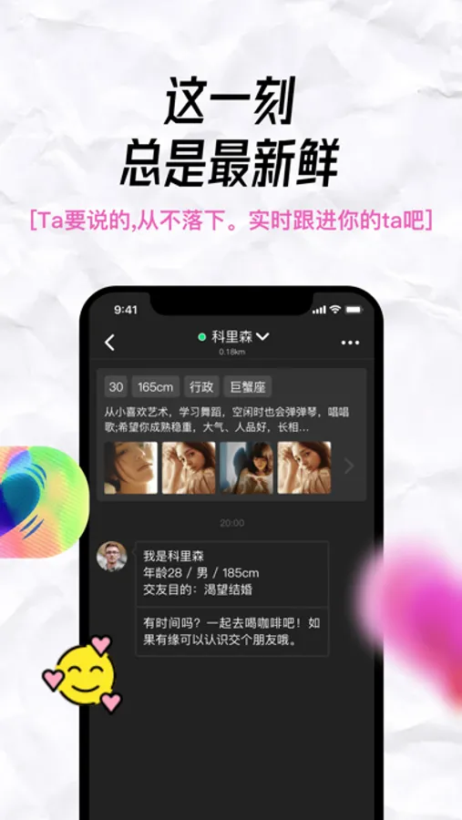 这里聚集有趣、好玩、爱分享的年轻人,通过线上认识更多朋友,线下约会、玩剧本杀、密室、聚餐、看电影、喝咖啡等娱乐活动,解决下班、周末、午餐、咖啡餐无聊的场景,找一个志同道合的朋友约会聊天。