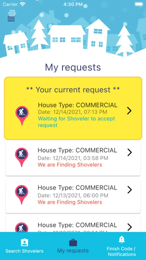Customers can hire shovelers and Shovelers can create their profile in the app to offer Services to the customers.
