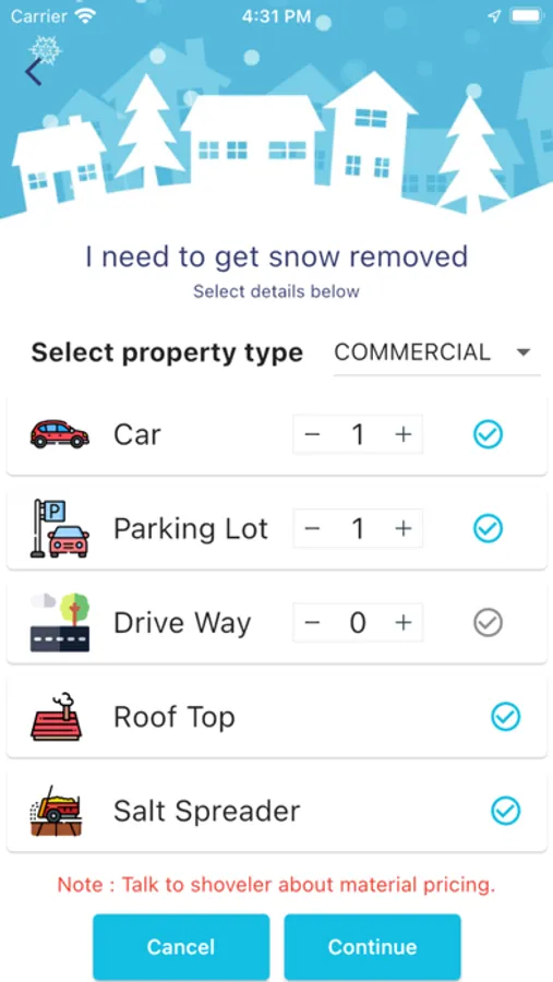 Shoveler can select the type of equipment they have to give a better idea to the customer of what could be used to remove the snow, including heavy equipment for snow removal.
