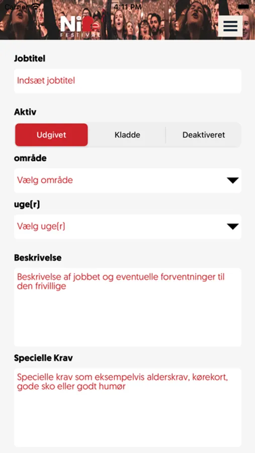I denne app kan du se ledige medhjælperjobs på Nibe Festivalen. Det er også muligt at ansøge om ledige jobs i app'en.