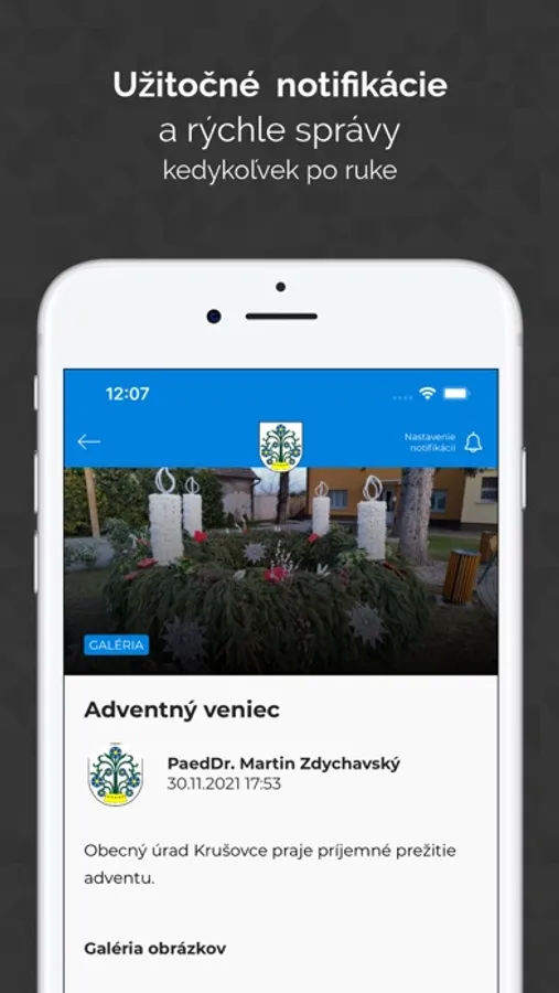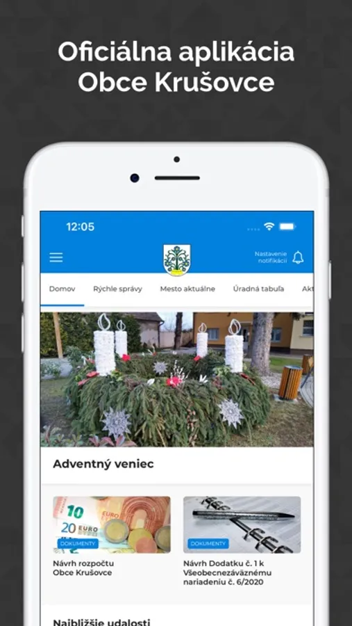 Mobilná aplikácia obce Krušovce. V aplikácii nájdete aktuálne informácie z diania v obci, kalendár, dôležité kontakty aj top lokality. Môžete si nastaviť upozornenia na rôzne udalosti, od noviniek, cez udalosti kalendára až po denné sumáre. Obec Vám v prípade kritickej situácie (napr. povodne) môže poslať upozornenie priamo do aplikácie.