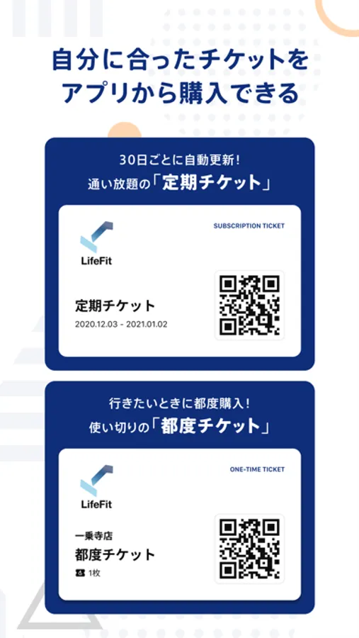 通っていみたいジムをアプリで探します。ジムが見つかったら「チケット」を購入!