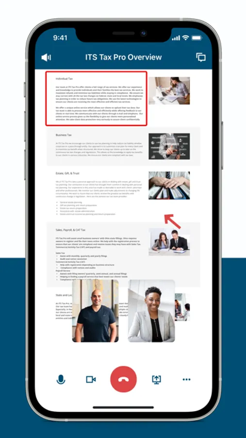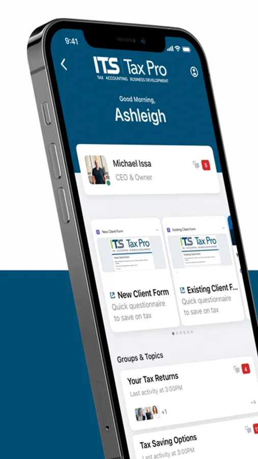 The ITS Tax Pro one-stop hub is a secure tax solution that will save you time. Use our app to upload and share files, scan tax documents, receipts, IDs, photos, and more with your mobile device. Tax returns and other documentation are securely stored, providing you with private access to all files at any time — complete with in-app e-signature capabilities.