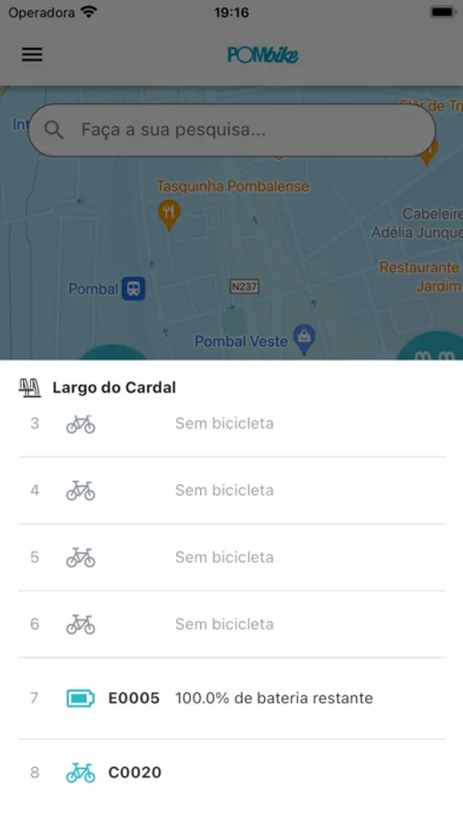 • VISUALIZAR AS ESTAÇÕES E BICICLETAS: É possível verificar no mapa onde se encontram as estações mais próximas e as bicicletas disponíveis.