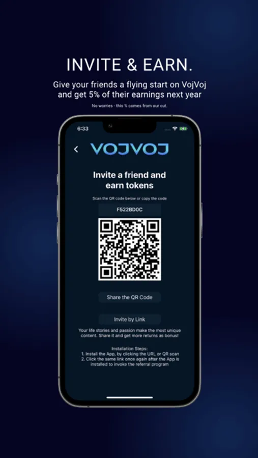 • You’ll also earn VojVoj Tokens when others share your content, and the person who shares will also benefit from increasing your visibility.