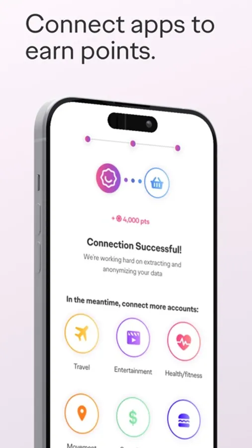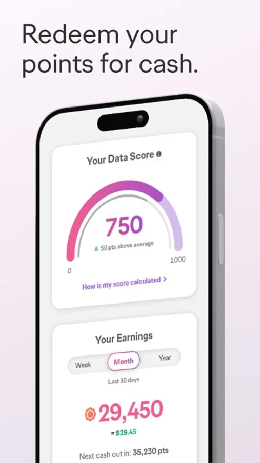 2. Earn points for consenting to share your data. You’ll be able to earn points for connecting accounts, surveys, and surprise bonuses. Redeem points for money and cash out directly to your qualifying card or bank account.