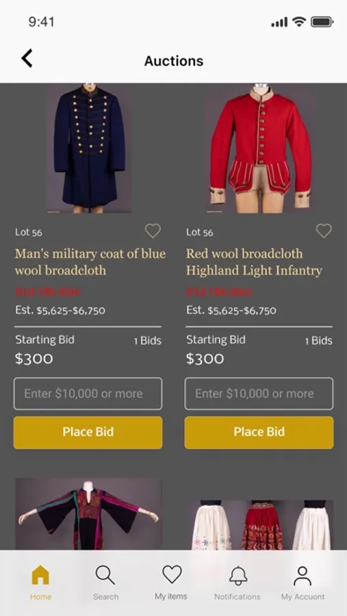 Serious buyers from the international fashion, museum, film and textile worlds travel each year to New York City, Vermont and Massachusetts to attend our specialty auctions. Consigned lots benefit from lively bidding online or at our various sale venues.