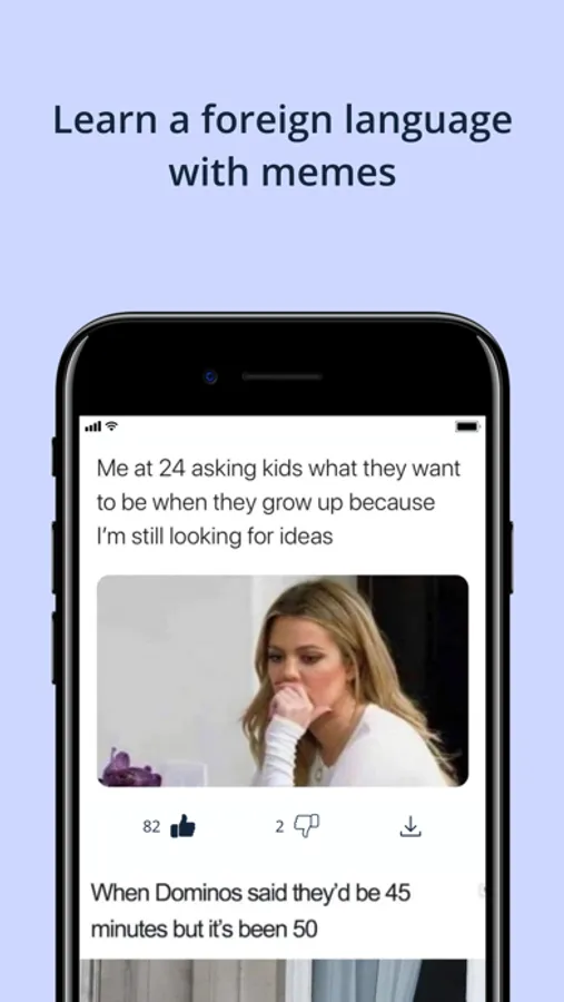 Learn foreign languages just by scrolling a feed with memes! Memes make us not only laugh, but they could also be a great tool to learn sentence structure and how meaning is affected by punctuation or spelling mistakes. Knowledge of Internet culture greatly facilitates communication with modern native speakers. Charge yourself and your friends with positivity!