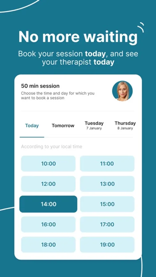 At Mindly, we believe that you should not have to wait for weeks or even months for your therapy session. We live in times of on-demand economy, and mental health should be no different. That’s why with Mindly, you can book your session today and see your therapist today as well, no more waiting!