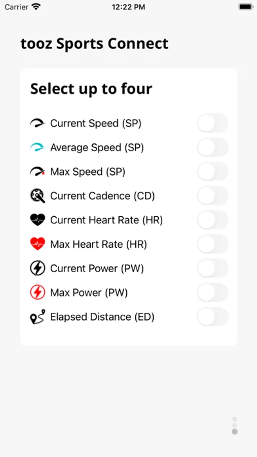 With help of this app, you can connect the tooz Smart Glasses with your Garmin sports devices as well as configure the data screens to be shown in your field of view. Choose from the following key performance indicators by toggling up to four in the configuration settings: Current speed, maximum speed, average speed, current cadence, current heart rate, maximum heart rate, current power, maximum power and elapsed distance.