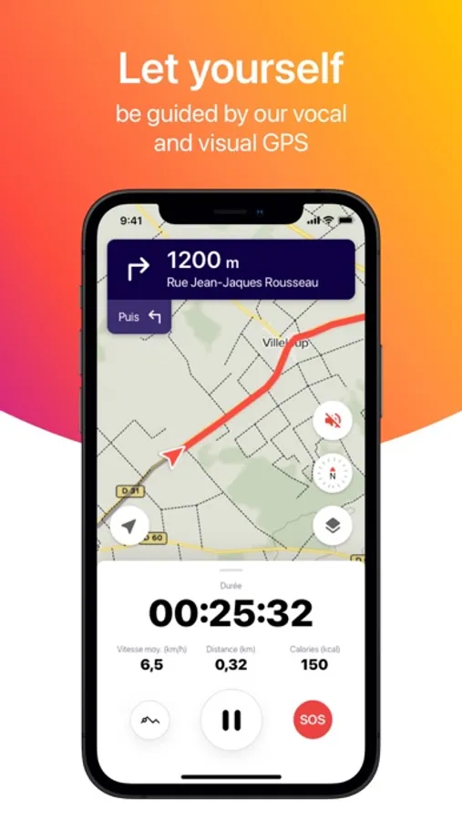 - An "SOS" button to warn your beloved ones in case you fall or face some troubles during your run (A problem on the route? Activate the "SOS" mode and your beloved ones will receive a text message with your exact GPS coordinates)
