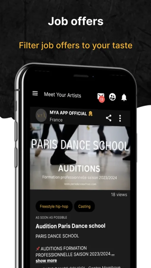 The objective is to put artists in touch with each other, as well as with structures worldwide, to facilitate finding employment offers & collabs as well as events in fifty artistic disciplines.
