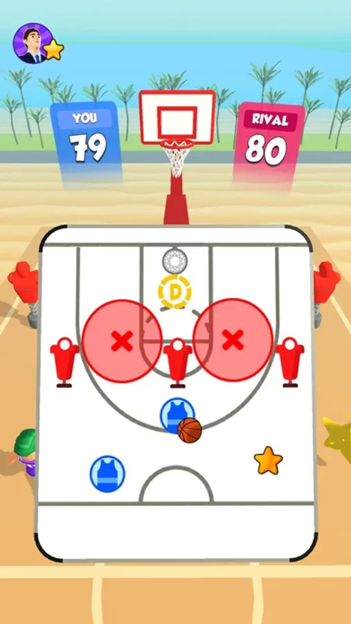 Create your strategy, draw your tactic and win the match. Find an available player, draw movements. Take your shot by drawing the ball towards the hoop.