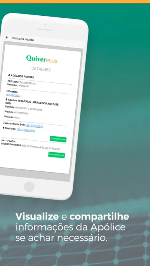 Aplicativo para acesso mobile ao gerenciador de corretoras Quiver Plus que vai permitir você acessar todos os dados da sua corretora, realizar consultas e atualizações, ajudando muito nos atendimentos fora do escritório e para os momentos que você estiver longe de um browser convencional. O Gerenciador Quiver Plus deve ser contratado junto a Quiver, este aplicativo é somente um acesso para os clientes já usuários do sistema. Mais informações em www.quiver.net.br