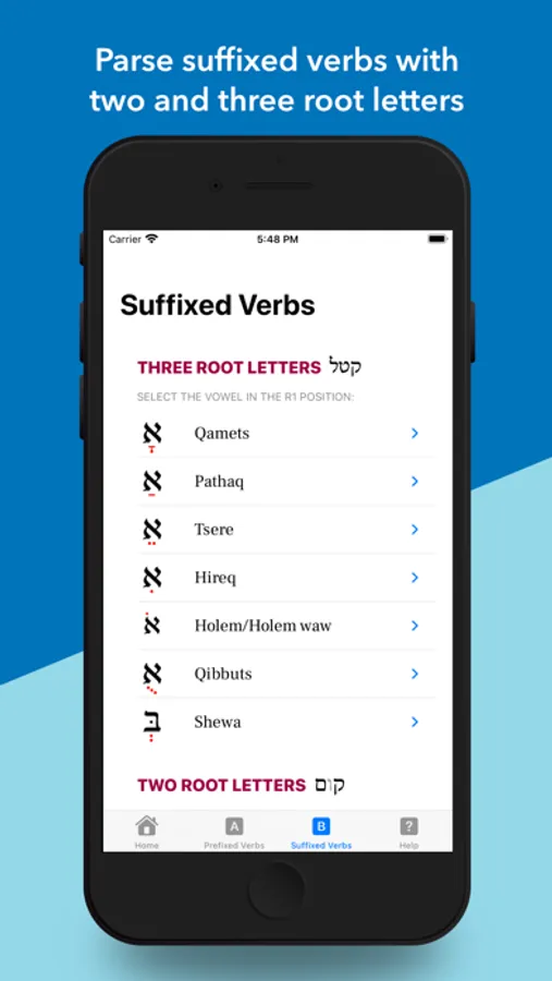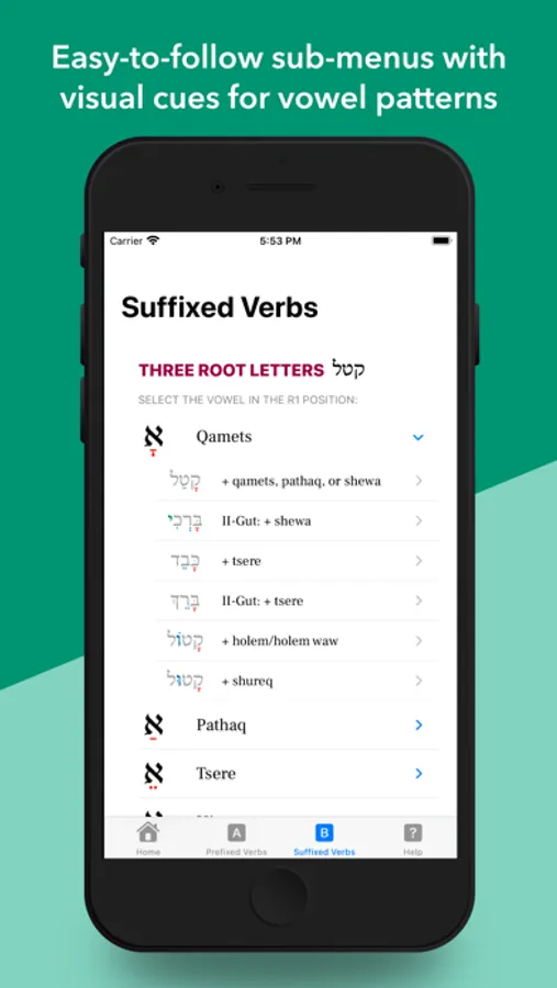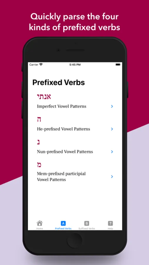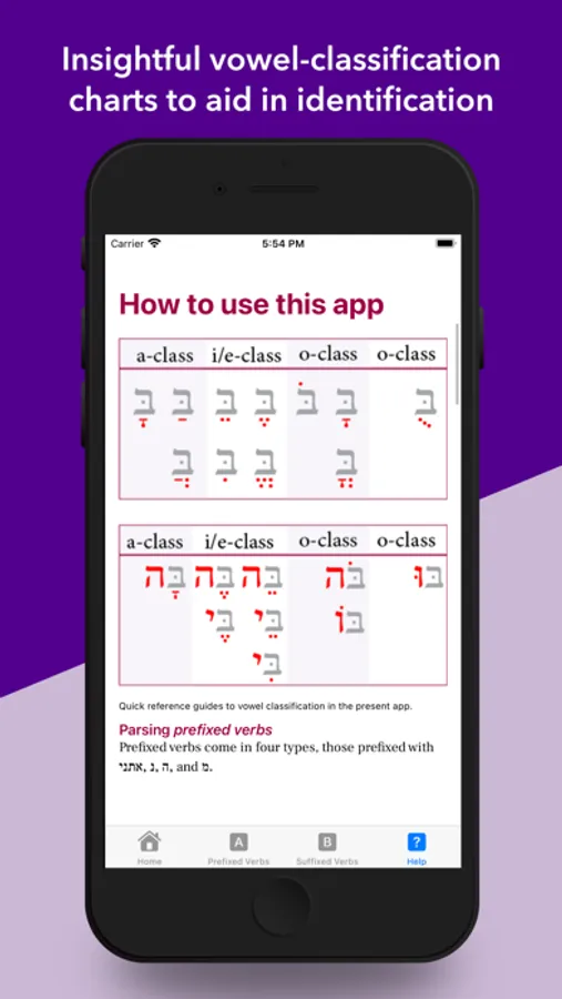ParseIt! Hebrew Helper lets the student of Biblical Hebrew easily identify the stem and aspect of nearly all Hebrew verbs in the Old Testament by verb type and vowel pattern. This app does not do all the work for you, but reinforces what you already know about the language, helping you to quickly identify the vast majority of verbs you'll run into while reading the Hebrew Scriptures.