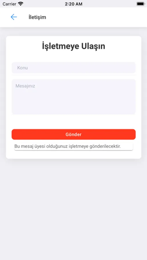 İşletmeye mesaj göndererek iletişime geçebilirsiniz.