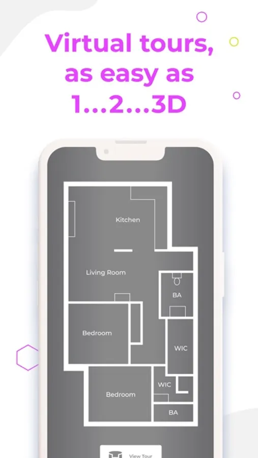 Follow The 3D App’s quick and intuitive guides to create your first 3D tour. Scanning your space is as simple as shooting a video. Once you're done, upload your tour. After it’s ready, you’ll have access to a host of new tools and features in our tour viewer. Move through your panoramas or view your tour top-down from our floorplan view. Add measurements, obtain square footages and include labels to each room. Once you're ready, share a link to your tour or embed it in a listing on select platforms.