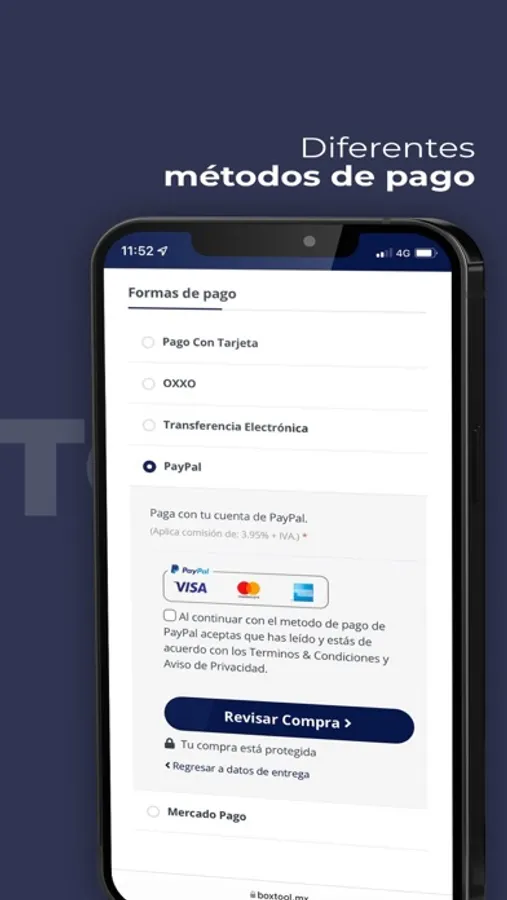 Contamos con distintos métodos de pago, con los que comprar es rápido y seguro. ¡No esperes más y descargar la App de Box Tool! No olvides aceptar recibir notificaciones para no perder de vista todas las promociones y novedades que tenemos preparadas para ti.