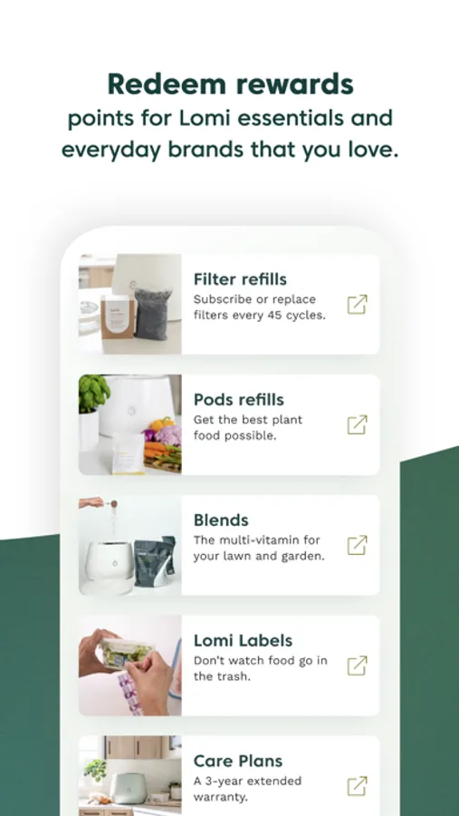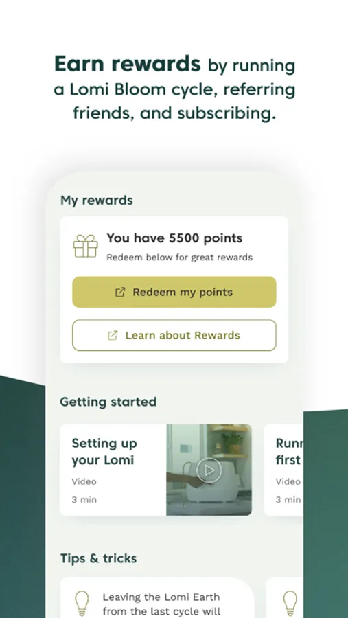 Turn your food waste into rewards. Earn points by connecting your device, running a Lomi cycle, referring friends, and subscribing. Use your Lomi points towards Lomi essentials and the everyday brands you love.
