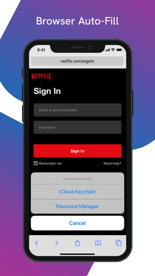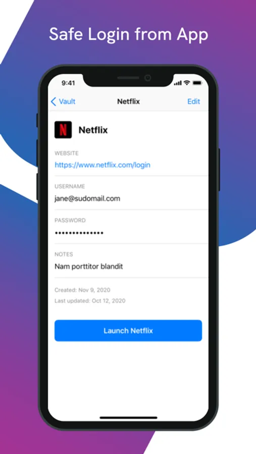 Add your account logins, credit cards, and bank accounts to the password manager vault. Each will be encrypted and only accessible by you. Not even we can see your data stored in the vault.