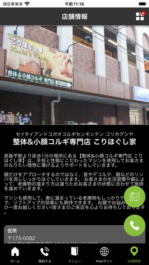 店舗のマップが表示され、地図アプリとも連携しているので、初めてのご来店の時も簡単に見つけることができます。