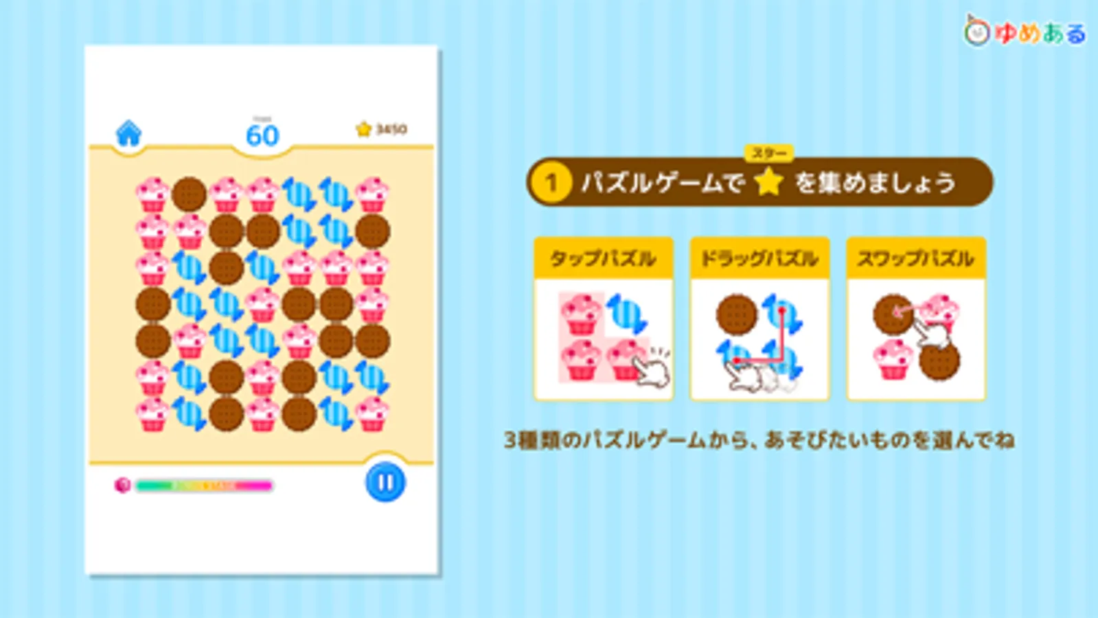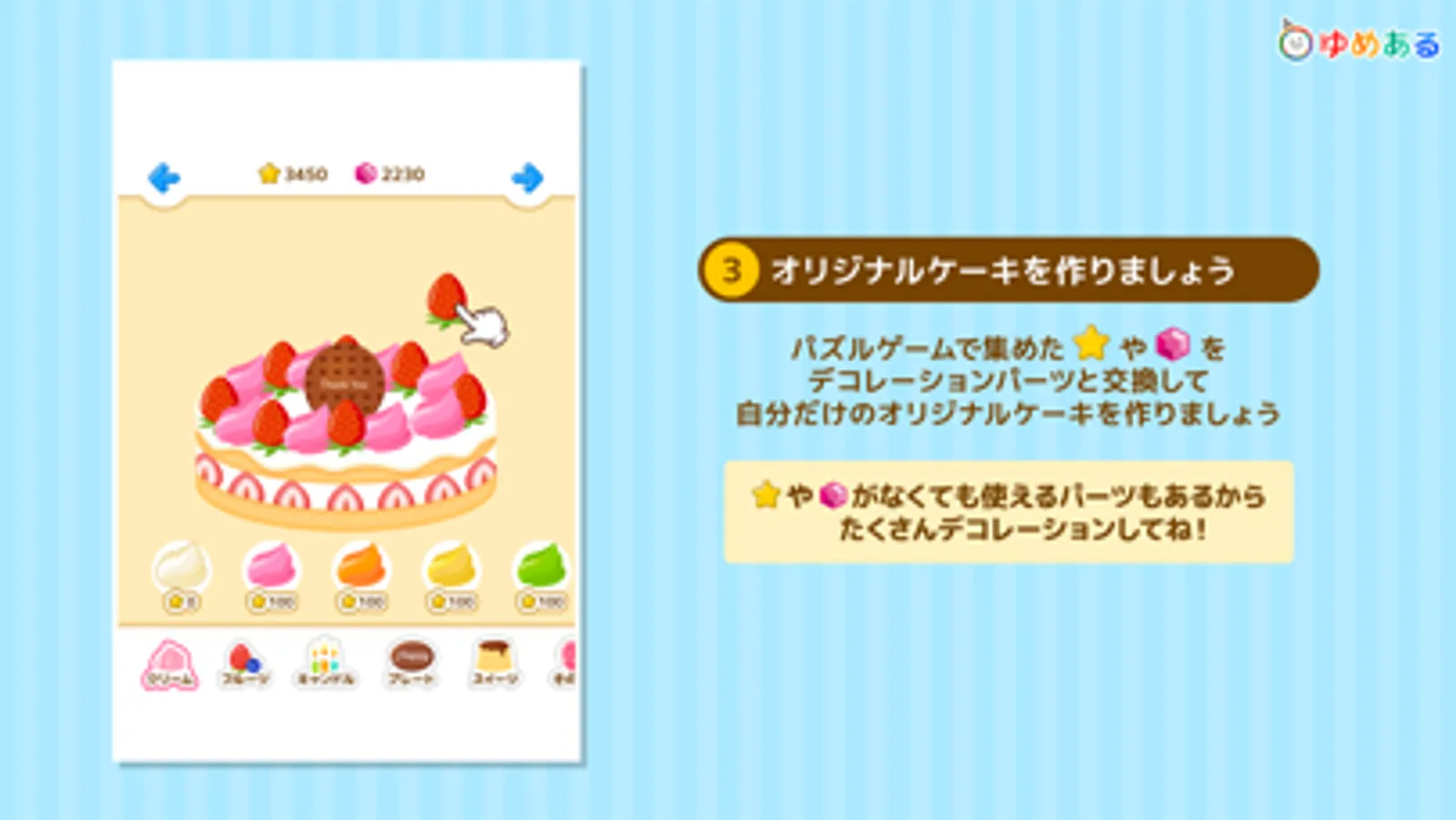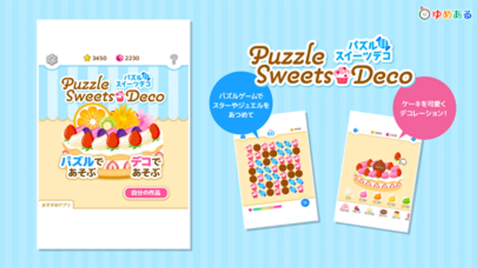 パズルゲームでスターやジュエルを集めて、可愛いケーキを作ろう!