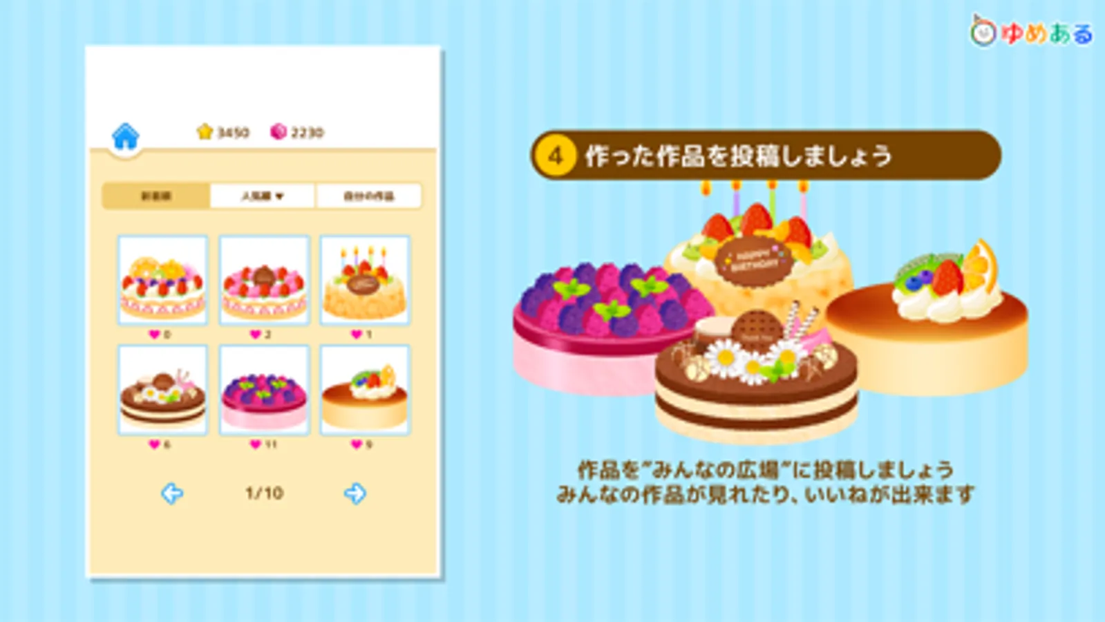 「みんなのひろば」では自分の作品を投稿したり、他の人の作品を見たり"いいね"が出来ます。