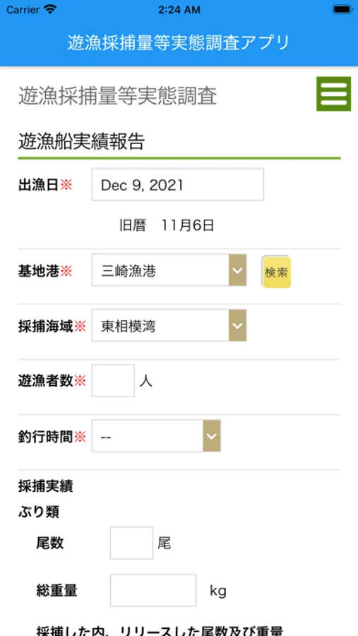 具体的には、釣りで捕獲した魚介類の種類や大きさなどを登録します。どなたでも登録できます。