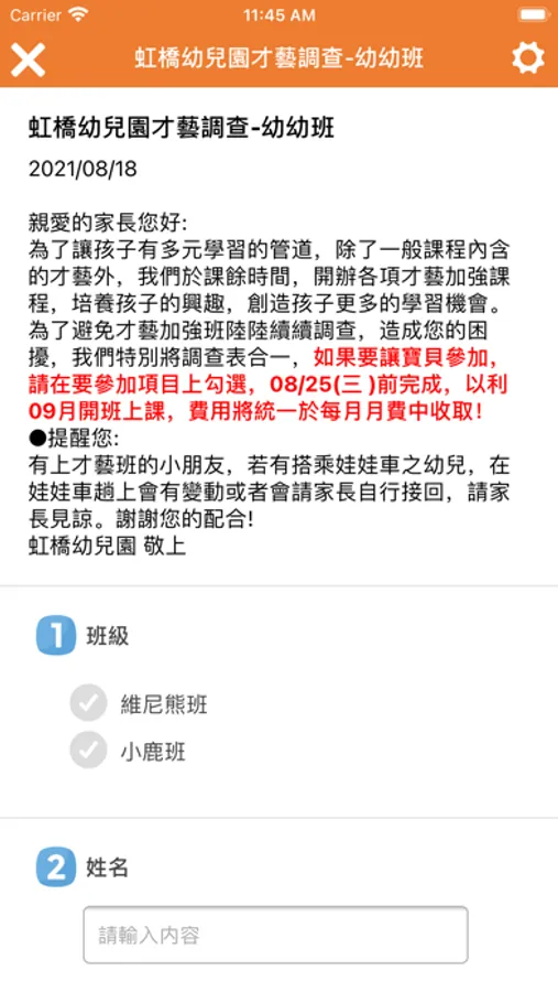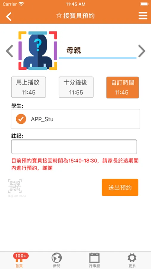 6. 接寶貝預約:家長預約接學生的時間,產生預接名單和語音廣播。