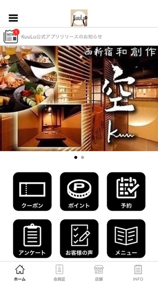 このアプリは、Kuu Coporation(株)の運営する、下記2店舗の公式アプリです。ポイントは両店舗共通でご利用頂けます。