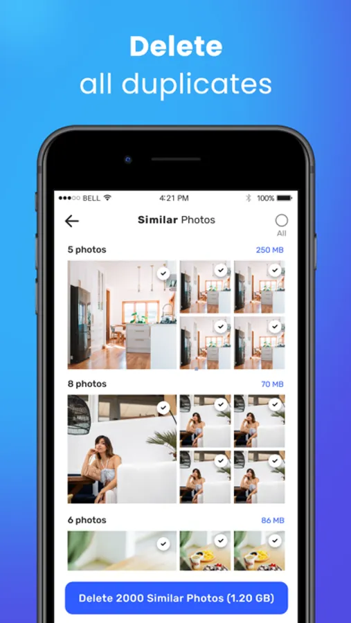 - Analyze and delete similar selfies, live photos and gif photos with the smart cleaning