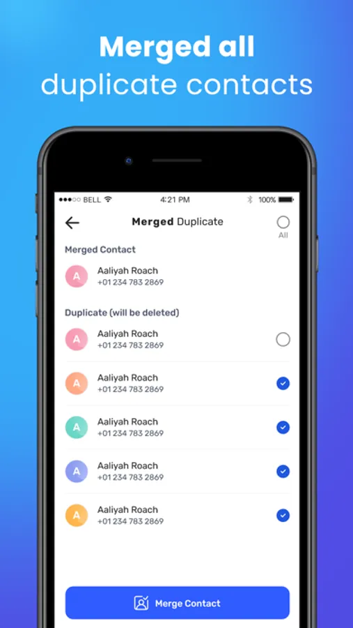 Merge duplicate contacts by name, number, or email