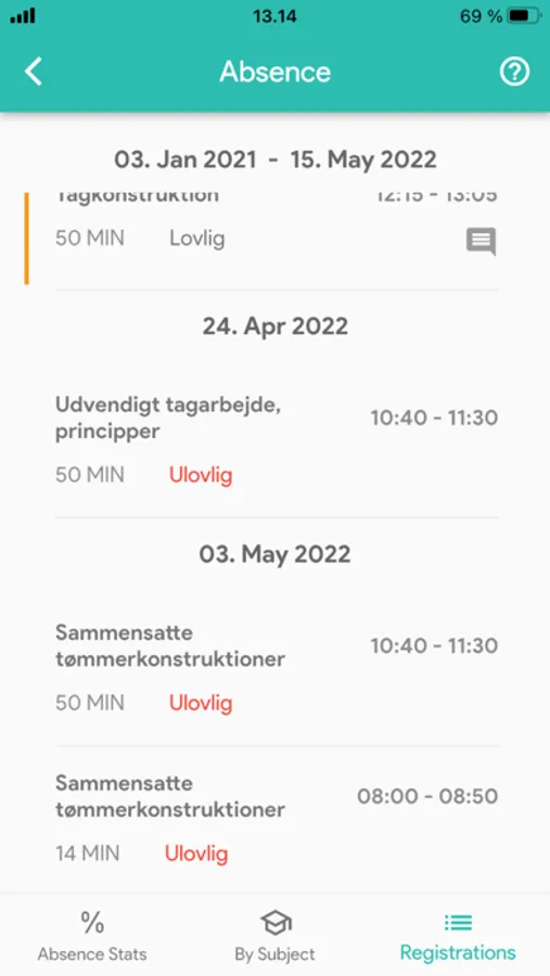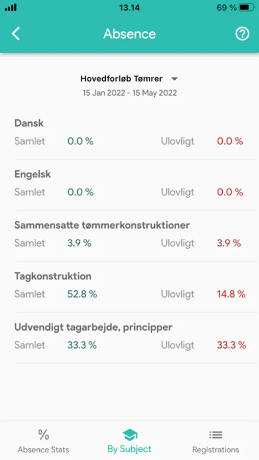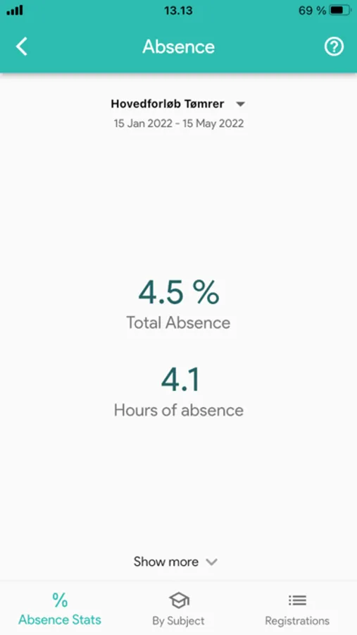 You can see information about your total absence and absence patterns, your absence by individual subject and your registrations of absence.