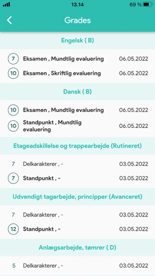 In your profile page you can add a profile picture, which is displayed in your student card and in the part of STUDICA that your teacher uses, and you can update your e-mail and telephone number. You can also switch between Danish, English and German languages in the app.