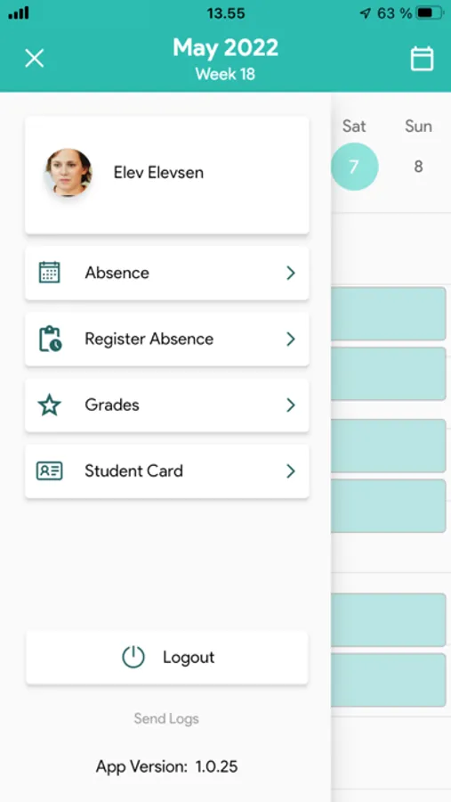 The app contains your schedule, absences, grades and student card, and you can report sick and add a profile photo, telephone number and e-mail.