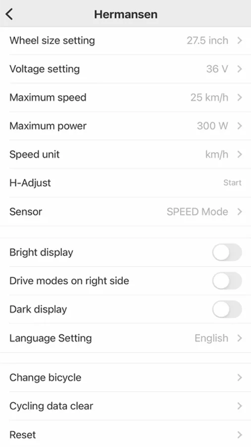 With the Hermansen e-bike app you can set your Hermansen e-bike's motor assist level, maximum speed and maximum power. You can also monitor the battery status, your riding speed, watt consumption and other related cycling data.